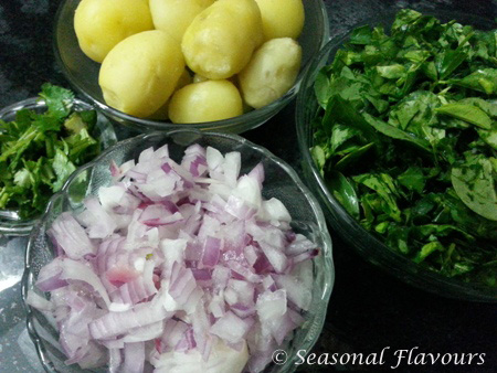 Ingredients for making potatoes with fenugreek leaves sabzi recipe