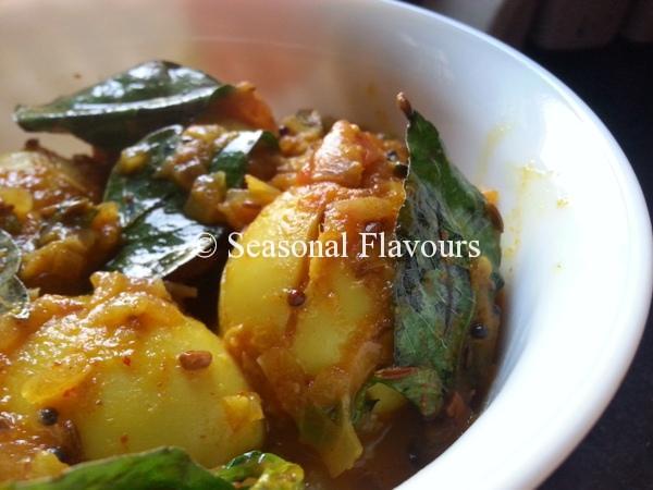 - Hard-boiled eggs simmered in a tangy masala
