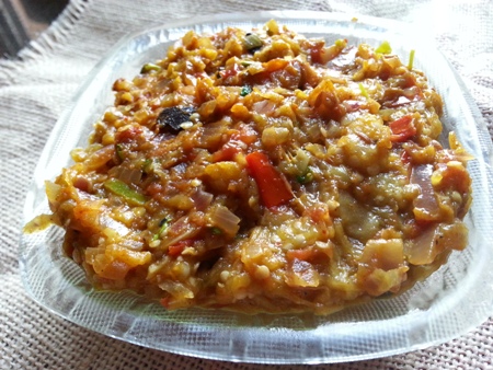 - Bihari Baingan Bharta – Mustard oil + raw onion + raw garlic for pungency