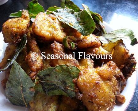 - Next, heat oil for deep frying in a kadai. Fry the fish in batches to a golden brown.
